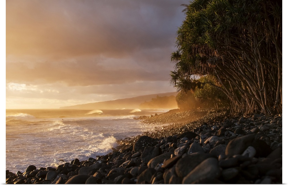 <p>Hamakua coastline at sunrise, Lapahoehoe Nui Valley; Island of Hawaii, Hawaii, United States of America</p>