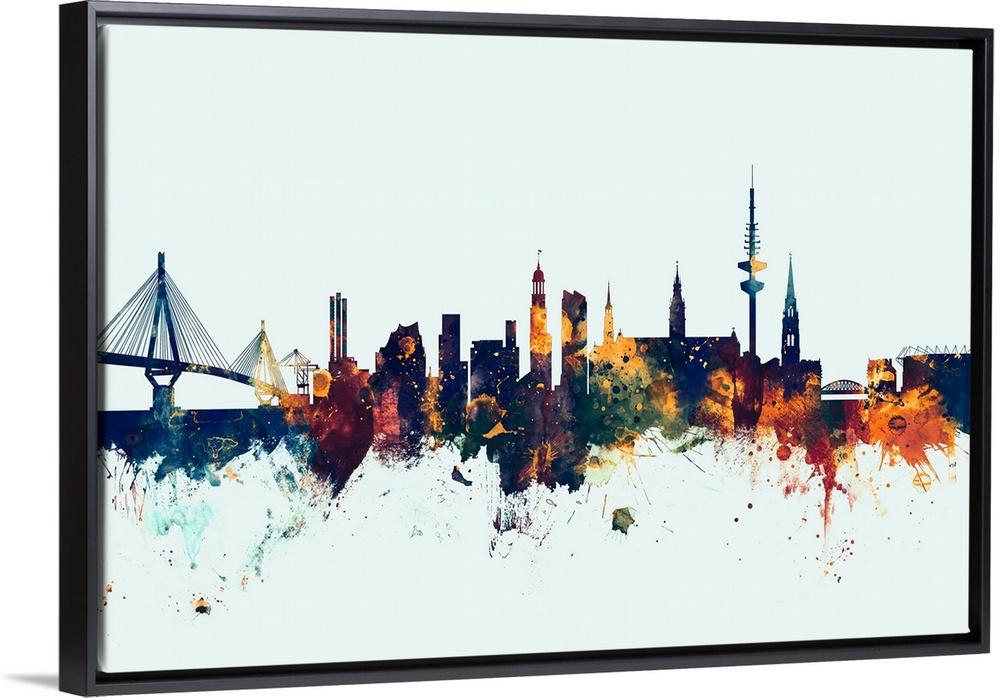 <p>Watercolor art print of the skyline of Hamburg, Germany</p>