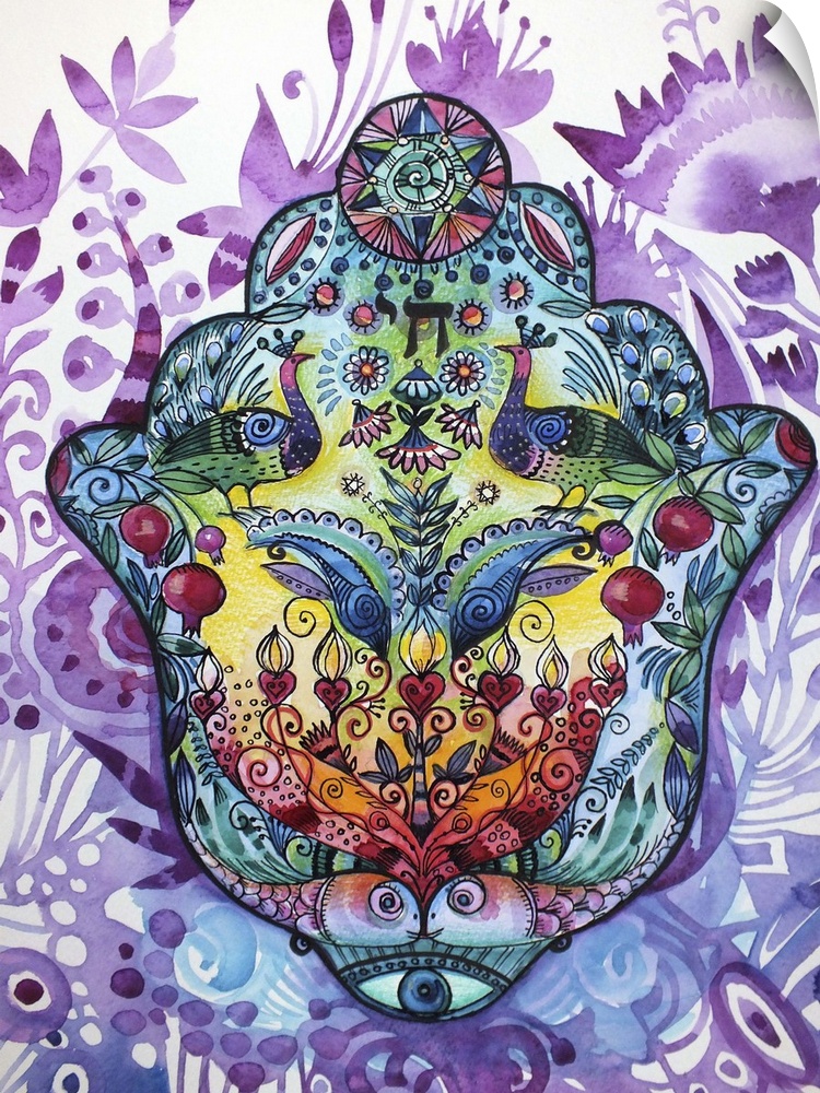 <p>Contemporary painting of the hamsa symbol with beautiful floral elements.</p>