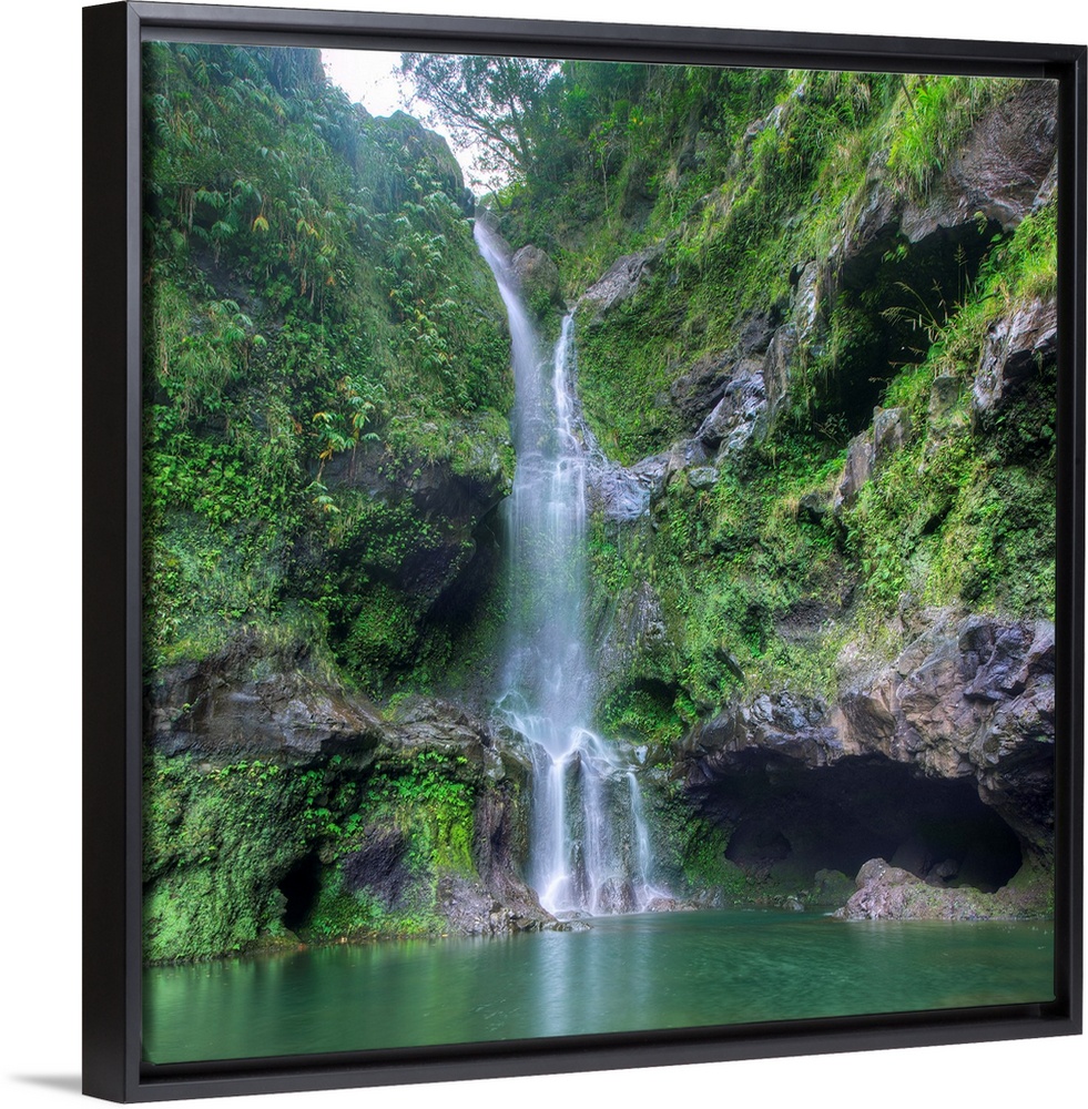 <p>Square photograph of a lush waterfall in Hana, Hawaii.</p>