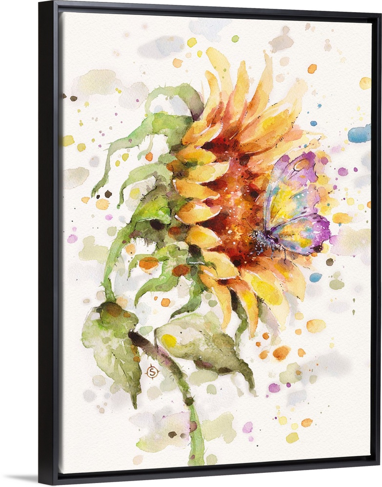 Art Plants and Flowers Decorative Art Florals Sunflower Painting Sillier than Sally She Shed Décor Watercolor Insect and Arachnid Butterfly