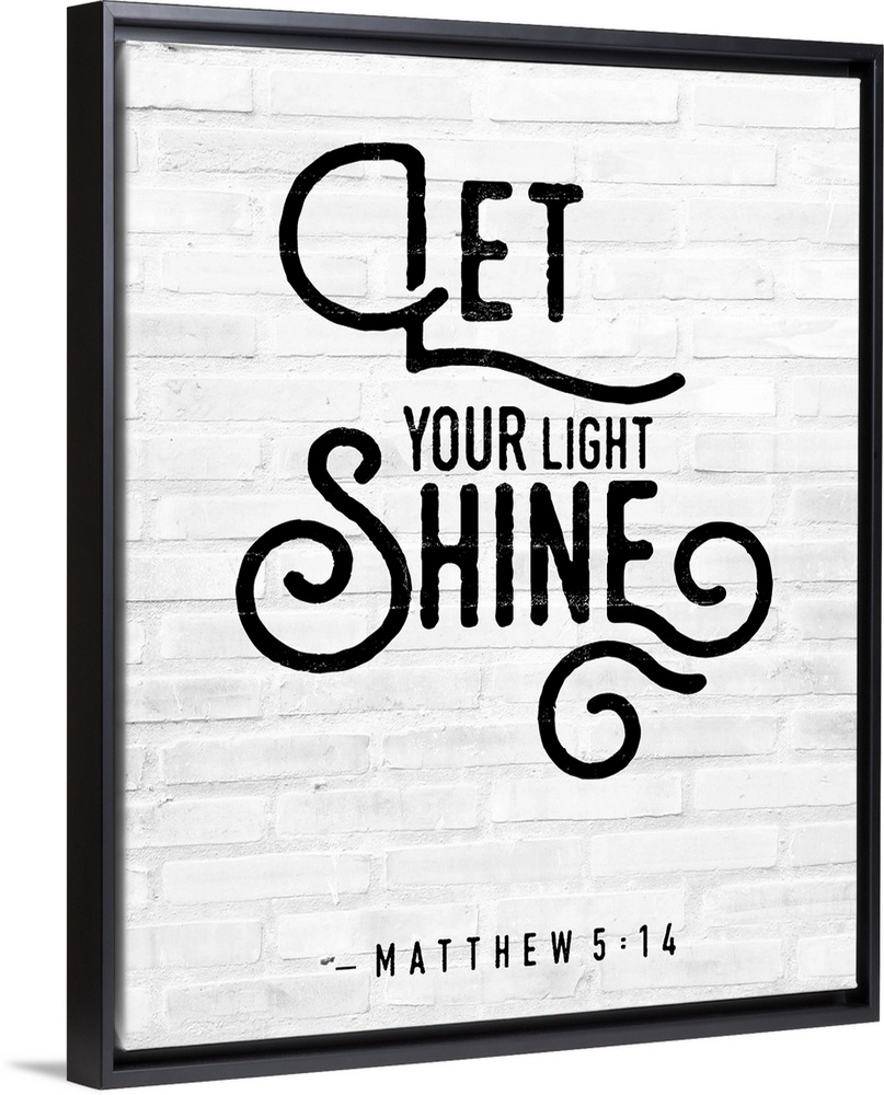 <p>A Bible Verse stating 'Let your Light Shine' in a modern black font against a faux white brick background.</p>