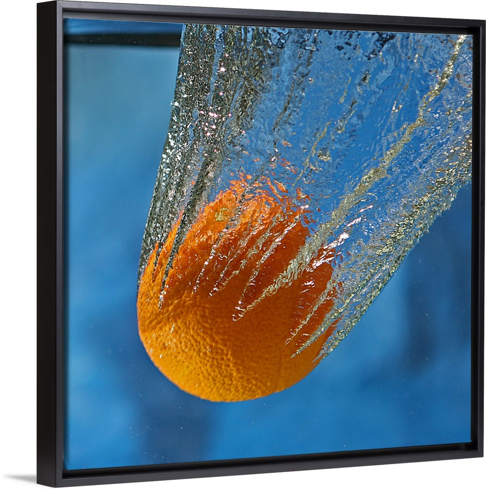 <p>An orange splashing into a tank of clear water.</p>