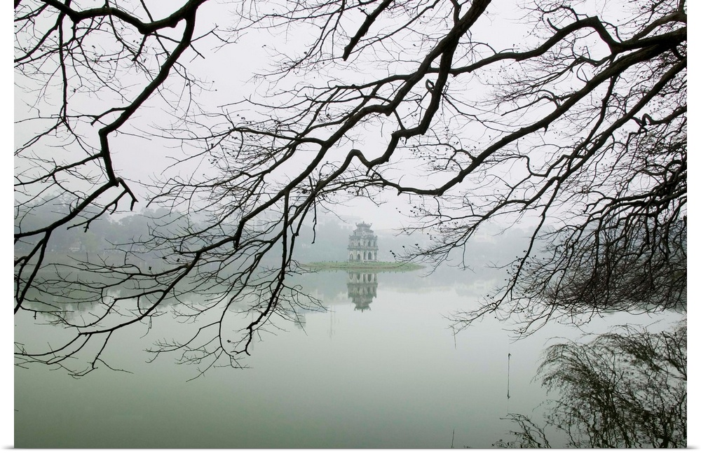 <p>Hanoi Lake, Hanoi, North Vietnam, Pagoda and Trees.</p>