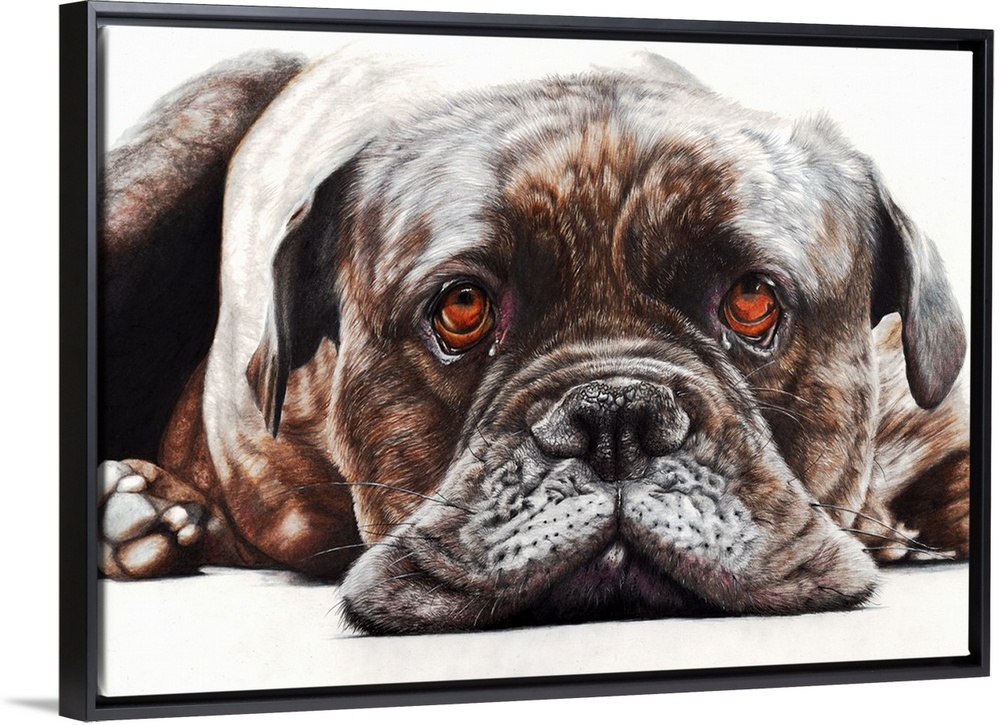 <p>'Happy Days' is a coloured pencil drawing. A close up portrait of the wonderful, characterful face of Ruby who is an English Bull Mastiff. A charming picture that would suit any room in the house of any dog lover and is guaranteed to bring a smile to the face of all who see it.</p>