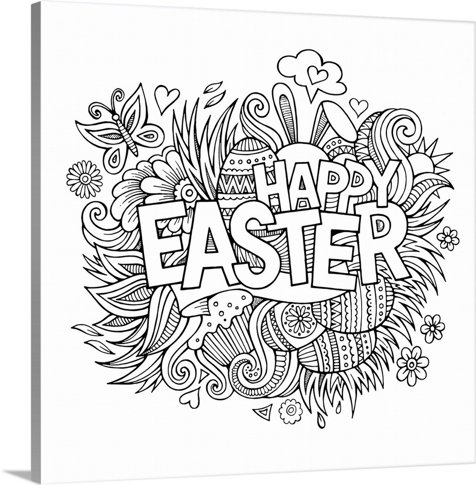 <p>Easter-themed design with bunny ears and decorated eggs. Perfect for coloring canvas.</p>