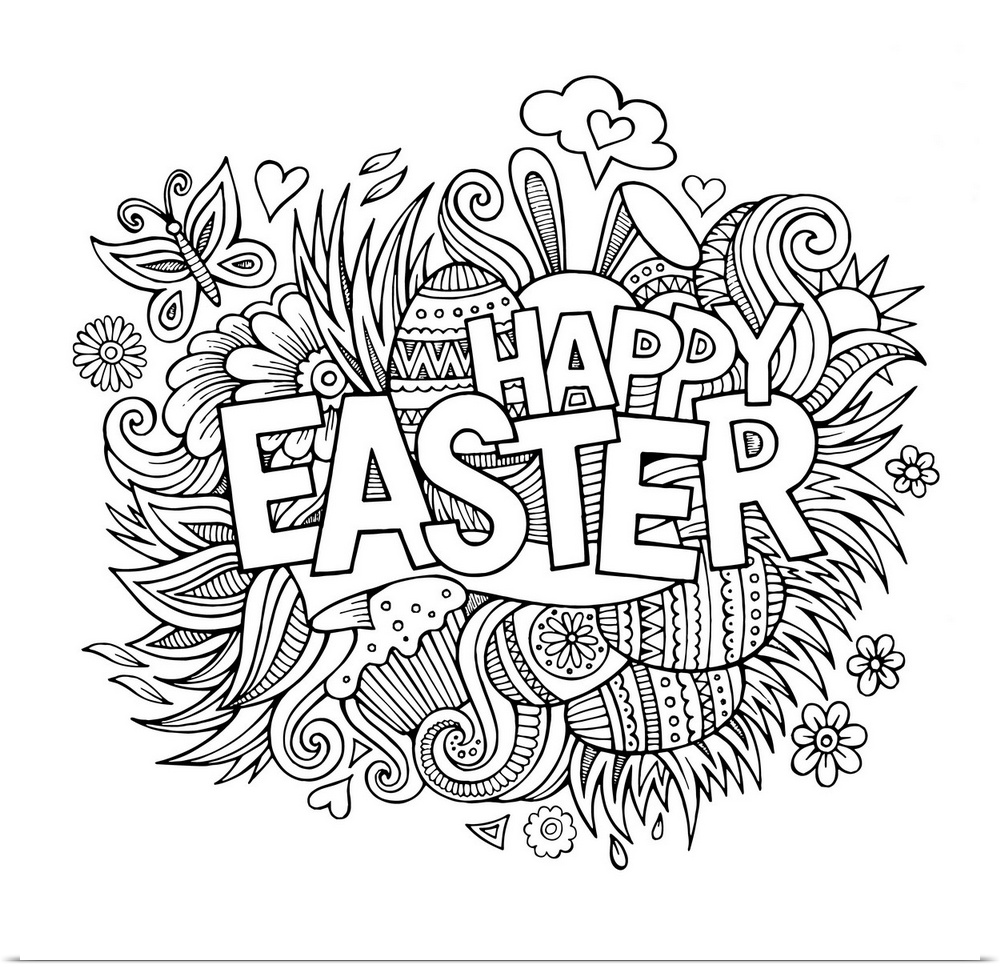 <p>Easter-themed design with bunny ears and decorated eggs. Perfect for coloring canvas.</p>