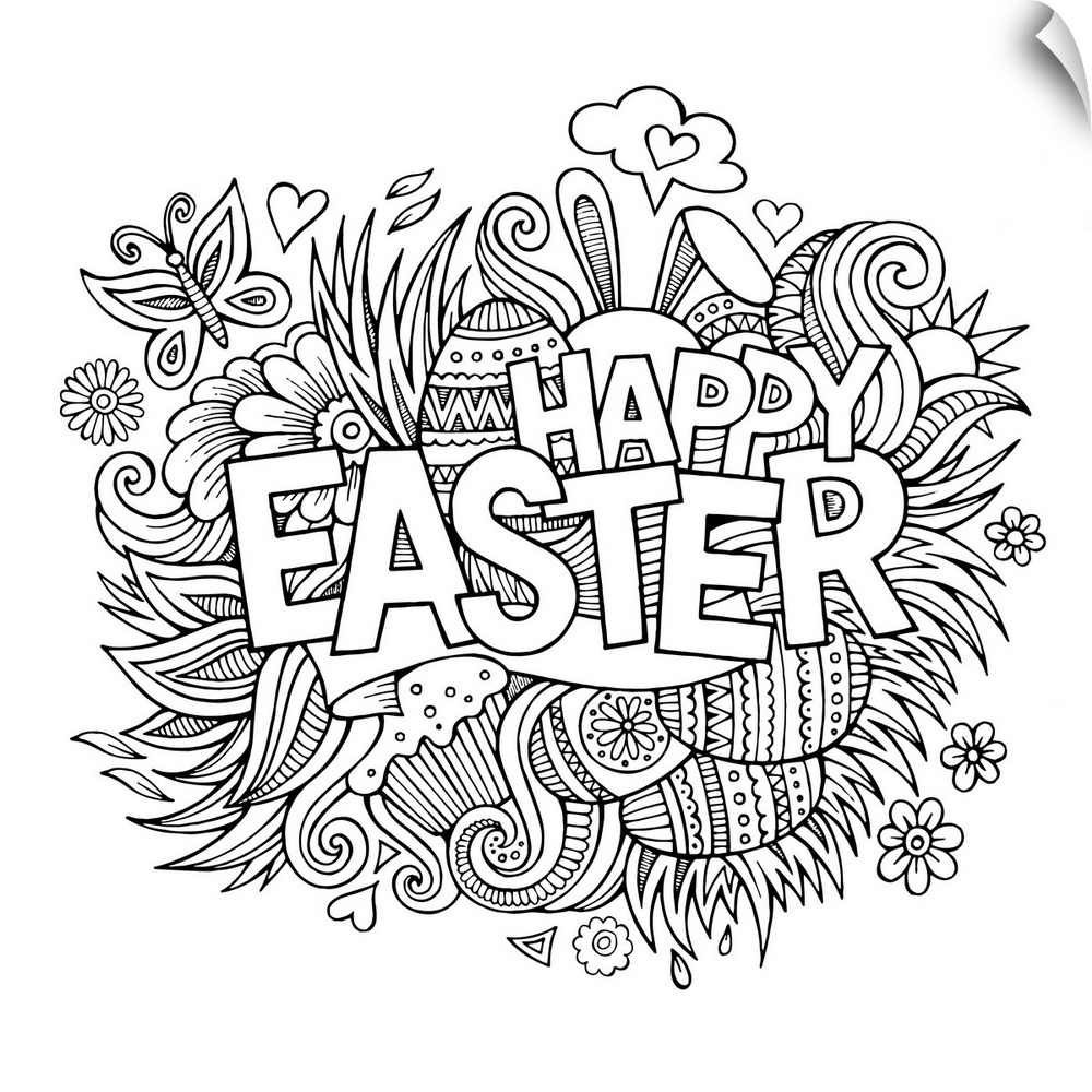 <p>Easter-themed design with bunny ears and decorated eggs. Perfect for coloring canvas.</p>