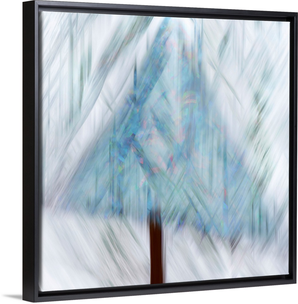 <p>Abstract image of a tree decorated for the holidays with colourful lights. The tree was covered in snow, the lights were glimmering through the snow. The backdrop is other trees and snow. The image was made using the in-camera burst multiple exposure + ICM (Intentional Camera Movement) technique. Ursula Abresch Winter Collection.</p>