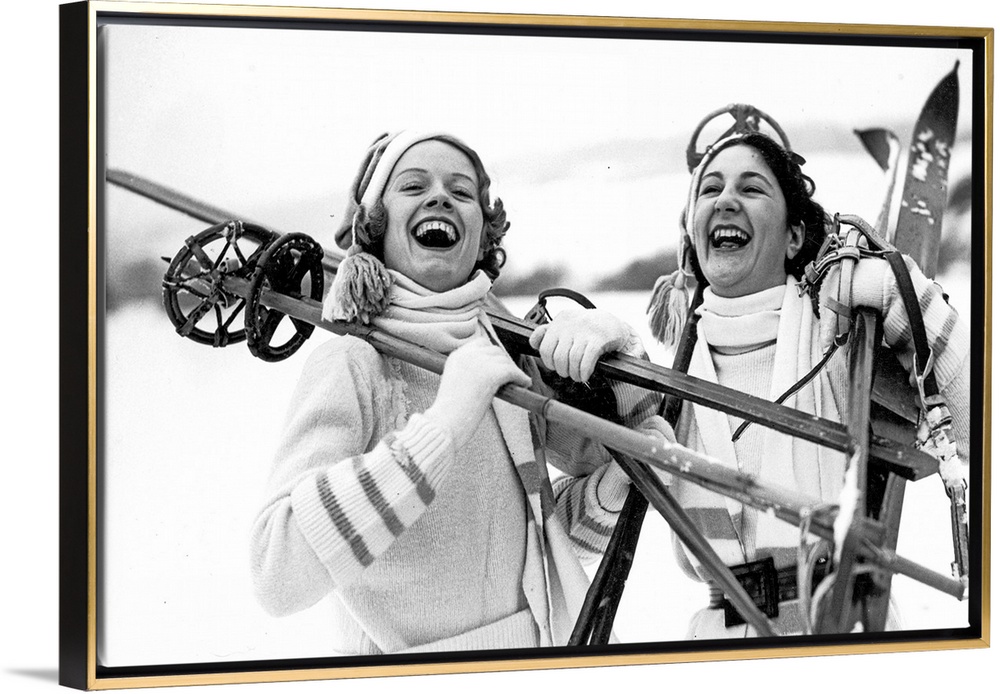 <p>30th January 1937: Two girls in Oxted off to the hills of Surrey, ready to make the most of the recent snow</p>