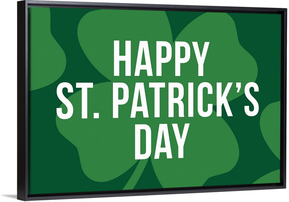 <p>"Happy St. Patrick's Day" written in white on top of a large four-leaf clover.</p>