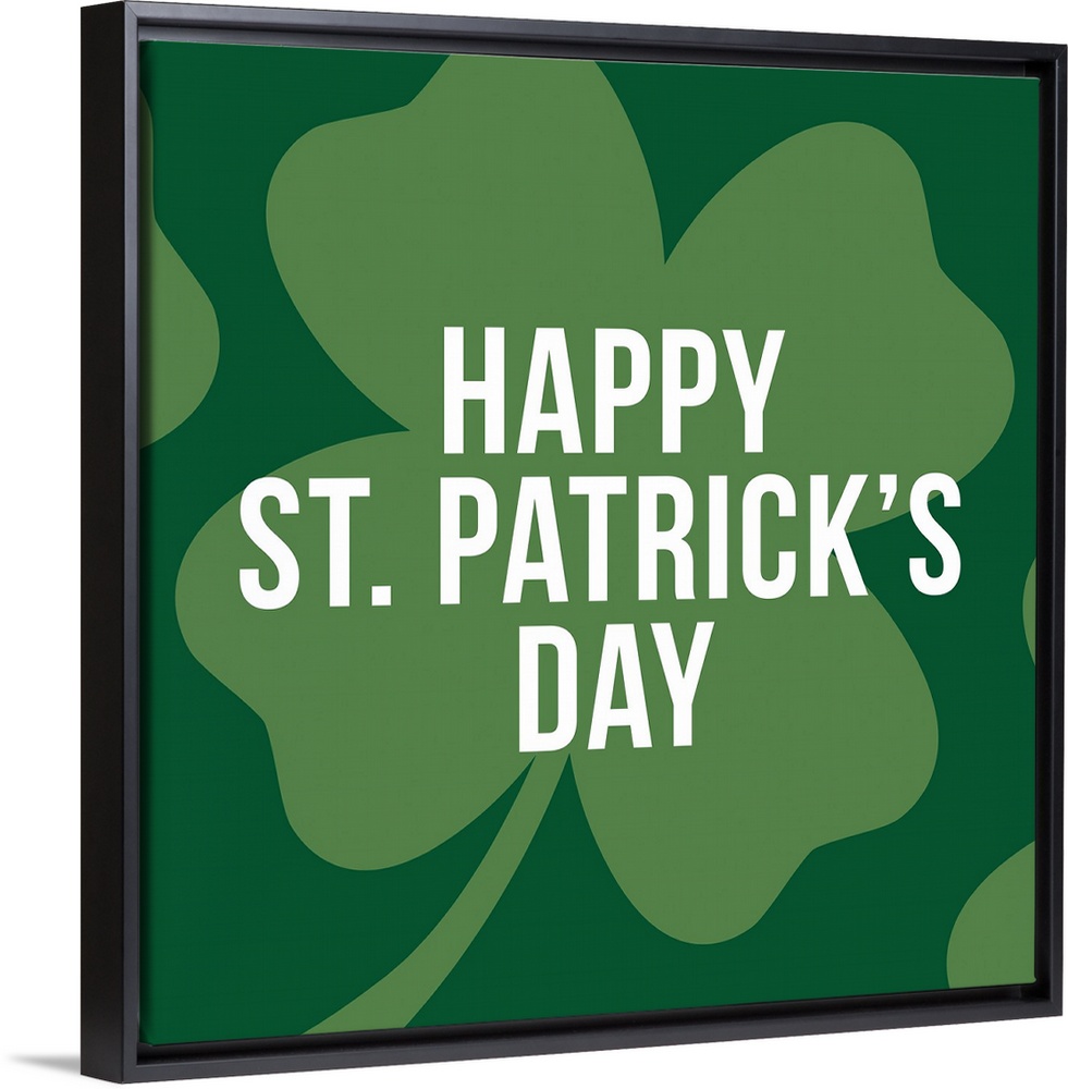 <p>"Happy St. Patrick's Day" written in white on top of a large four-leaf clover.</p>