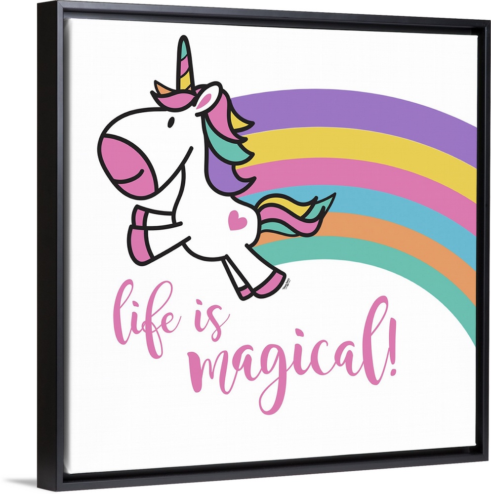 <p>Adorable decorative illustration of a purple unicorn with a rainbow trailing behind it and "Life is magical!"</p>