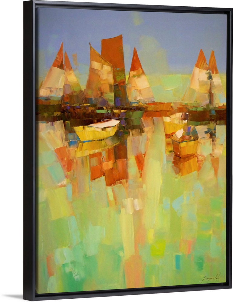 Art Contemporary Art Spring Forward Green Wall Art Harbor Seascapes Painting Transportation Boat Vahe Yeremyan