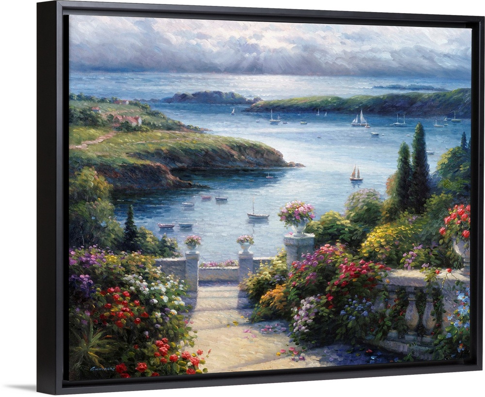 <p>Contemporary painting of an idyllic coastal European village.</p>