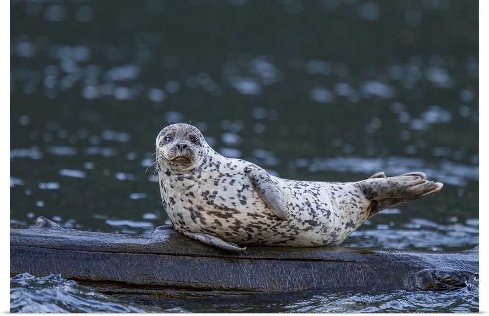 <p>Harbor seal (Phoca vitulina) hauled out on submerged log in Misty Fjords National Monument, Southeast Alaska, United States of America</p>