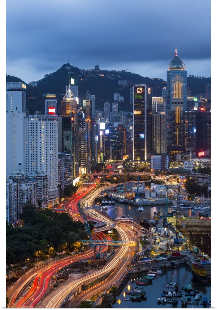 <p>Elevated view, Harbour and Central district of Hong Kong Island and Victoria Peak, Hong Kong, China</p>