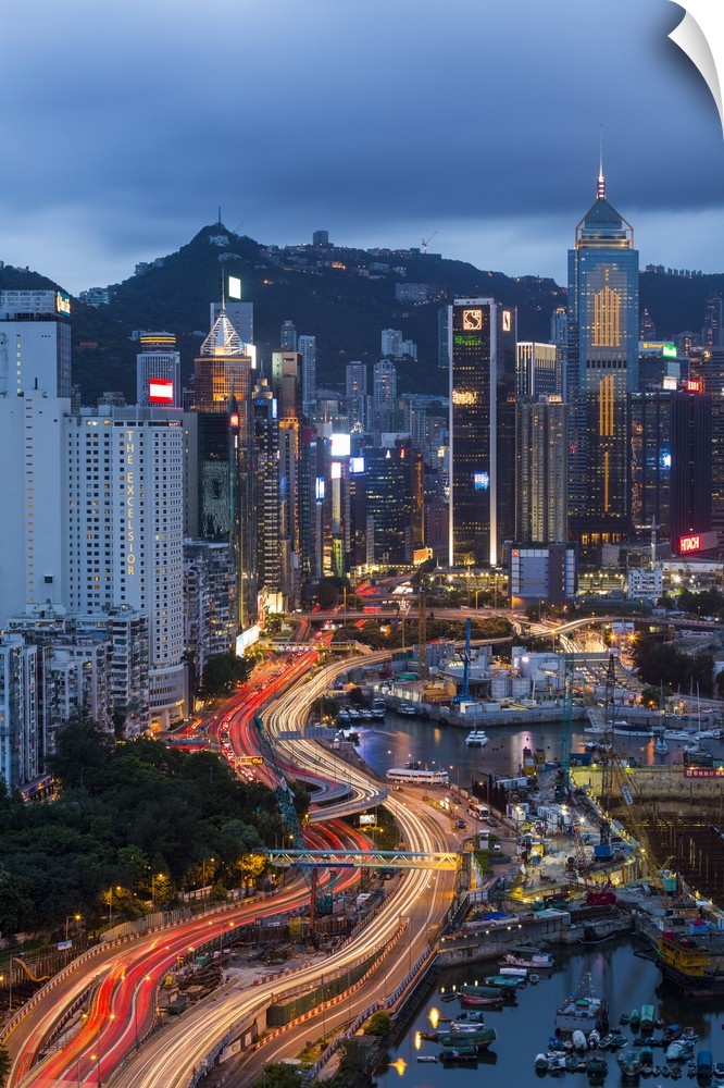 <p>Elevated view, Harbour and Central district of Hong Kong Island and Victoria Peak, Hong Kong, China</p>