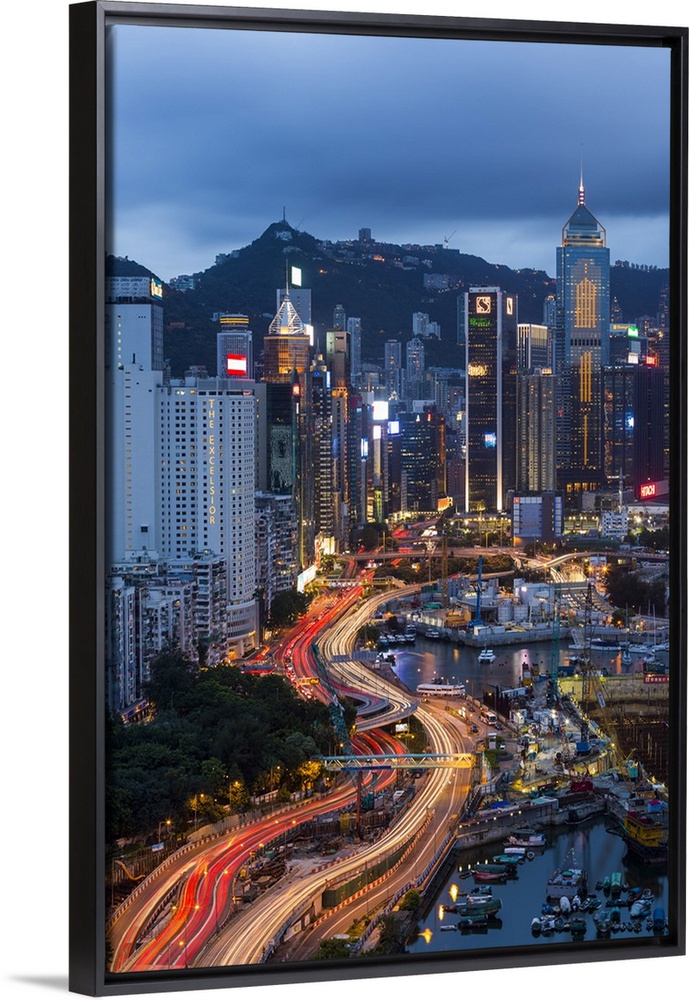 <p>Elevated view, Harbour and Central district of Hong Kong Island and Victoria Peak, Hong Kong, China</p>
