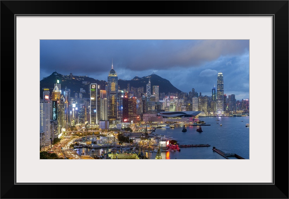 <p>Elevated view, Harbour and Central district of Hong Kong Island and Victoria Peak, Hong Kong, China</p>