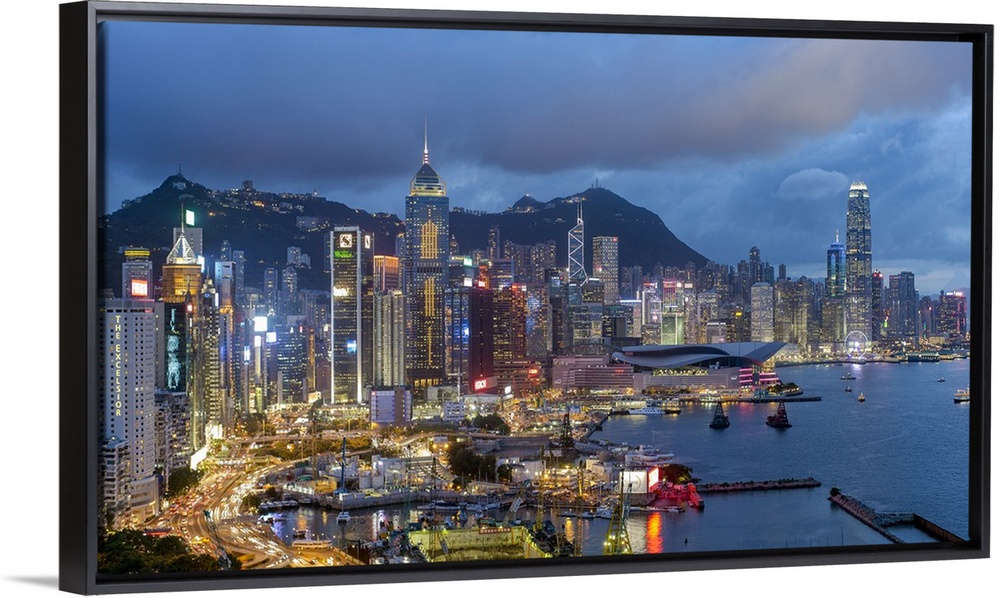 <p>Elevated view, Harbour and Central district of Hong Kong Island and Victoria Peak, Hong Kong, China</p>