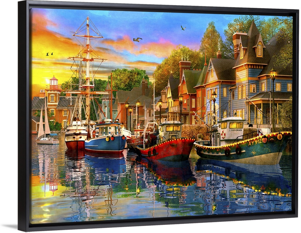 <p>Illustration of a small harbor town.</p>