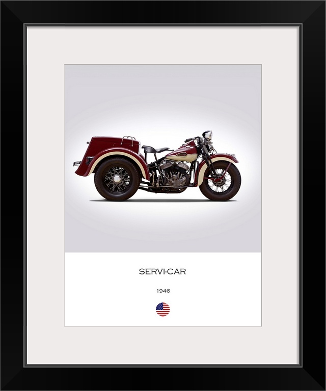 <p>Photograph of a Harley Davidson Servi Car 1946 printed on a white and gray background.</p>