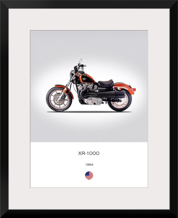 <p>Photograph of a Harley Davidson XR 1000 1984 printed on a white and gray background.</p>