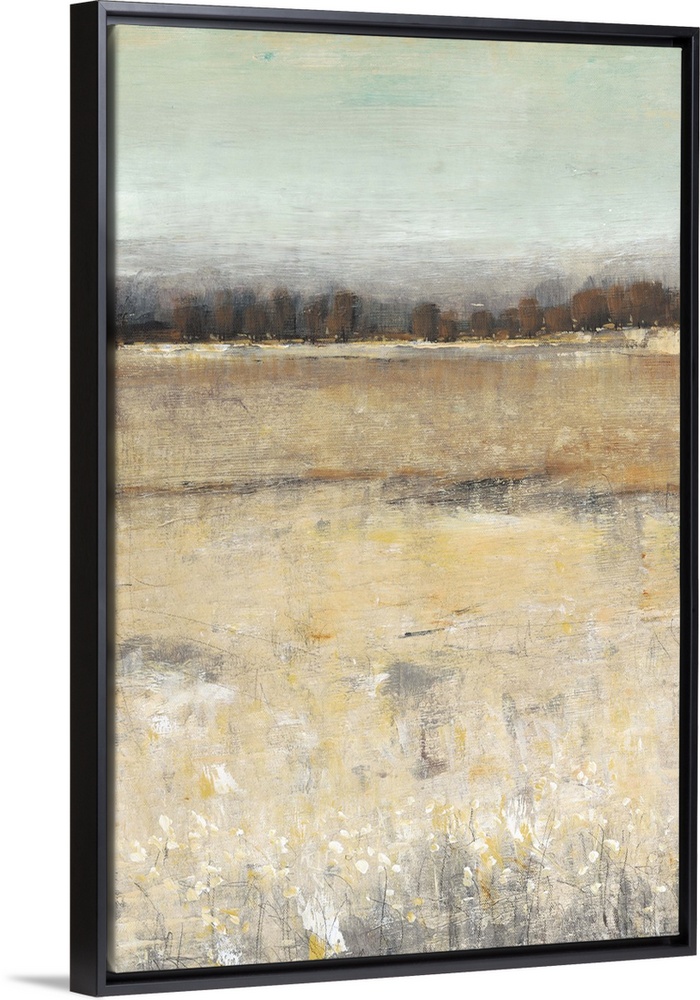 <p>Contemporary painting of a meadow with a forest at the edge.</p>