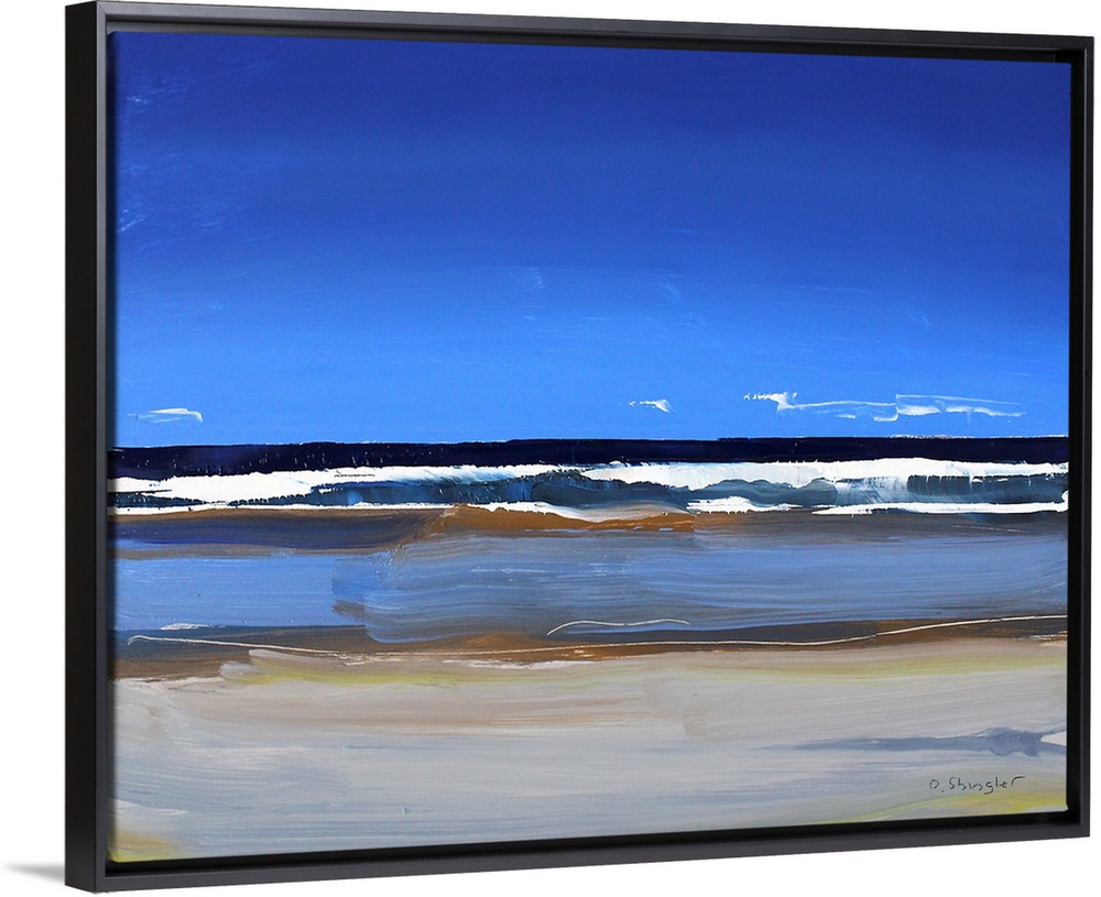 <p>Contemporary painting of a view starring out at the sea from a beach.</p>