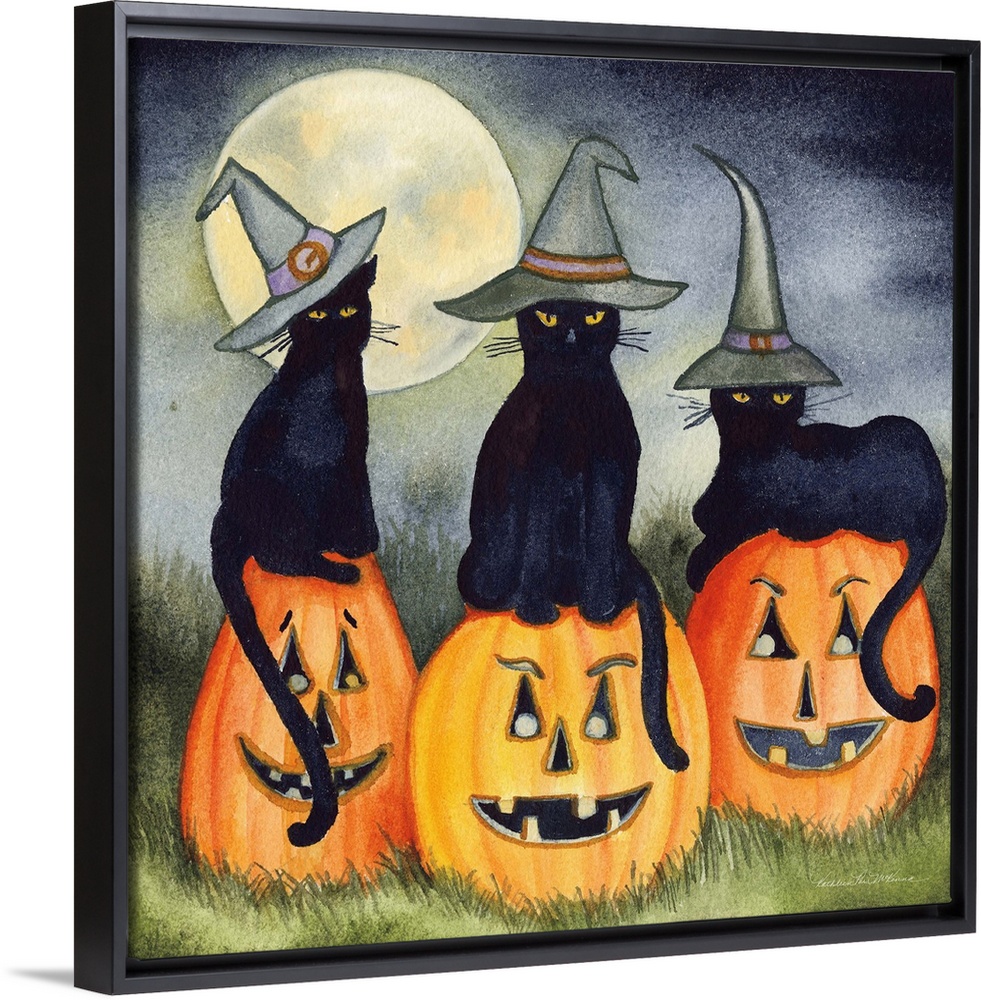Art Decorative Art Pumpkin Holidays Halloween Kathleen Parr McKenna Painting Watercolor Wildlife Cat