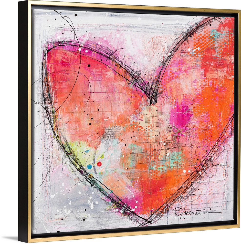 <p>A sweet sketchy image of a pink and orange heart outlined in black sketch lines. This is a warm and inviting contemporary piece</p>