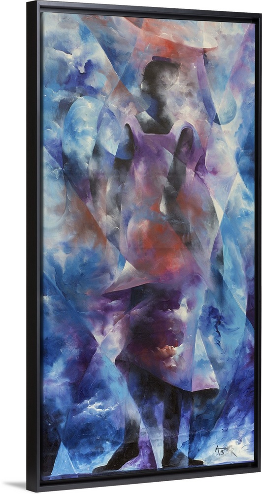 <p>Caressed by soft clouds, a woman emerges from the nebulous background to stride forward with purpose. Abstract shapes form a kaleidoscope, suggesting a busy, vital world. Prince Asher celebrates the women he portrays. She is from Tamale, the capital of Ghana's Northern Region, he explains. She is working hard as a local porter looking for goods to carry. She is Hausa and her name is Hawa, meaning Eve in Arabic.</p>