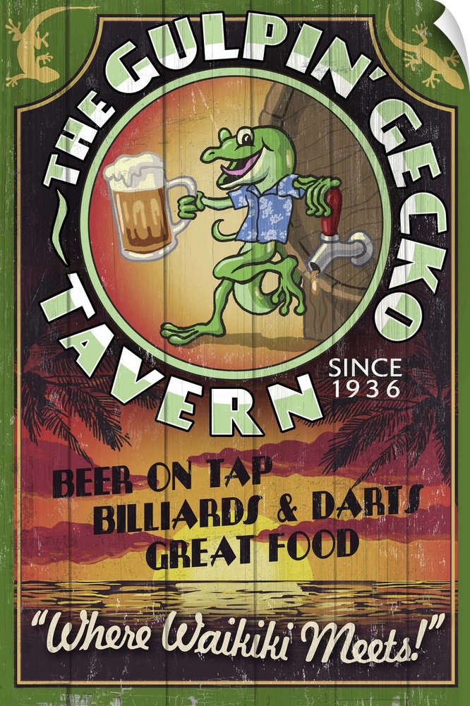 Art Restaurant Pub and Bar Wall Art Drinks Beer Lantern Press Lizard