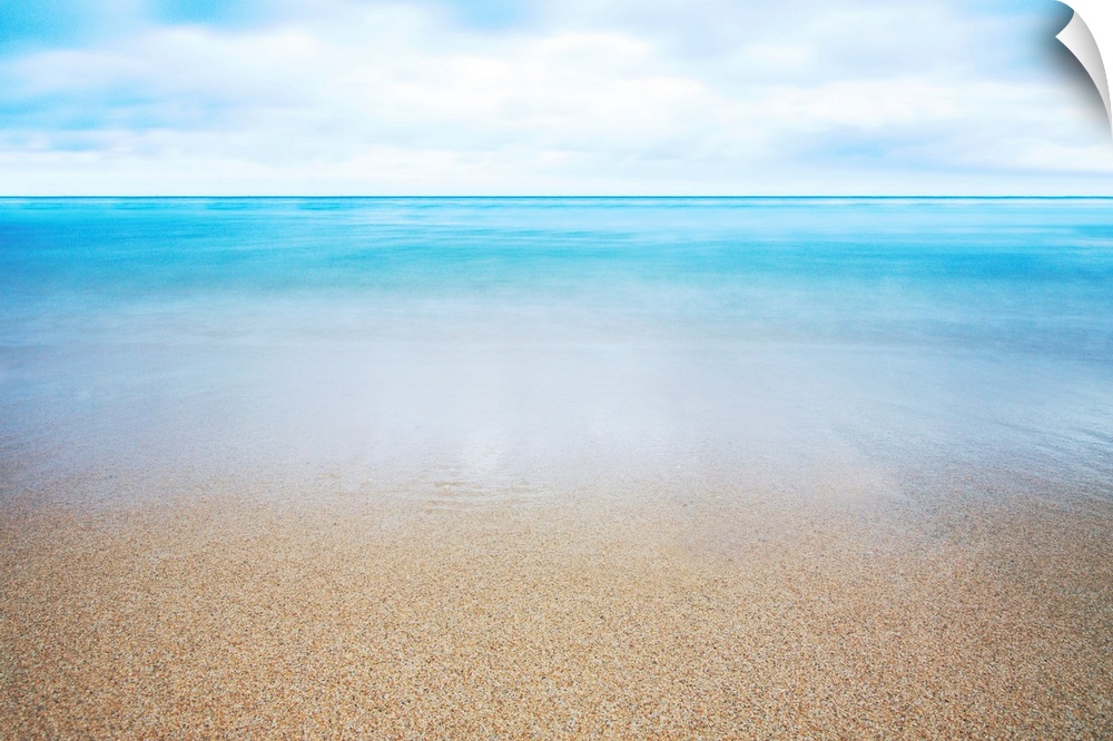 <p>Large print of a smooth Pacific ocean meeting a Hawaiian beach.</p>