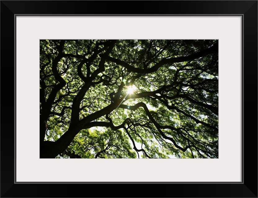 <p>Hawaii, Oahu, Huge Monkey Pod Tree With Sunlight Shinning Through Branches</p>