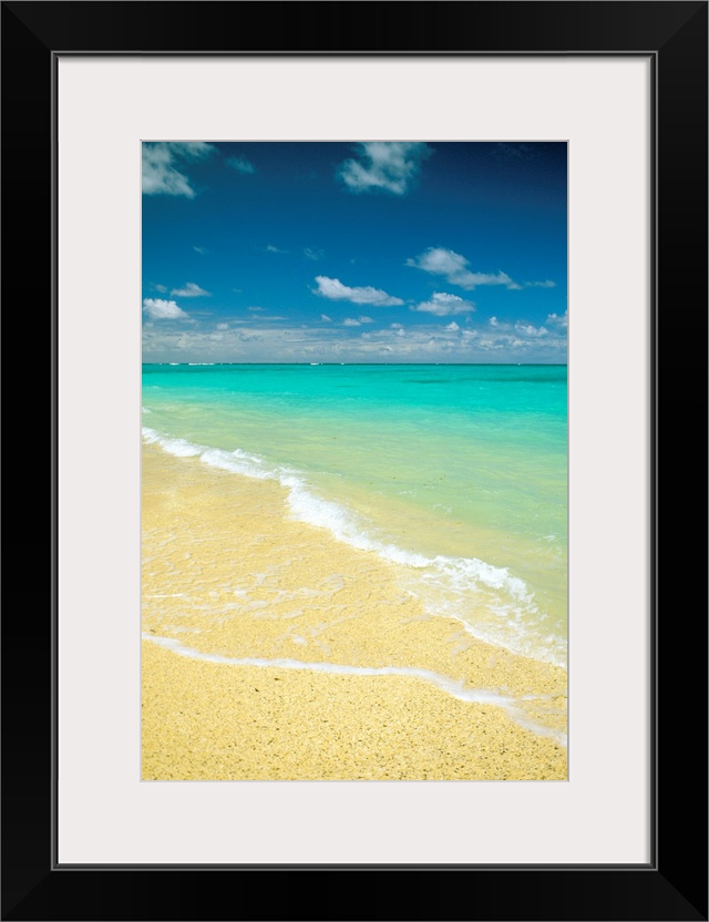 <p>Vertical photo on canvas of crystal clear waves washing up on shore of a beach.</p>