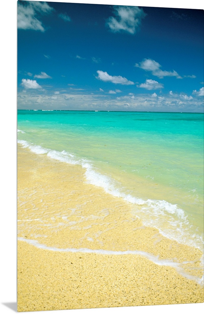 <p>Vertical photo on canvas of crystal clear waves washing up on shore of a beach.</p>