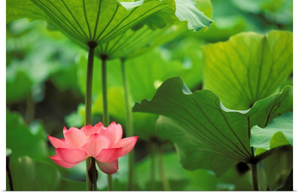 <p>Canvas photo art of a flower amounst big leaves.</p>