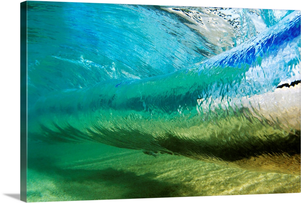 <p>Canvas photo art of a wave about to crash seen from underneath the water.</p>