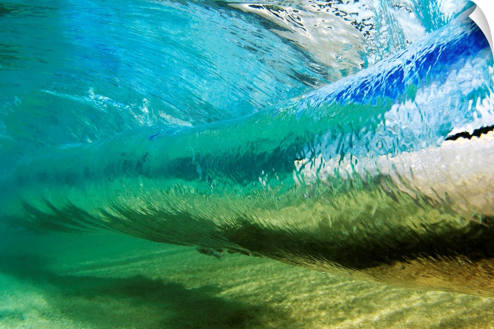 <p>Canvas photo art of a wave about to crash seen from underneath the water.</p>