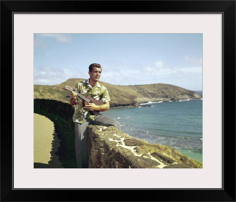 <p>Hawaiian Eye, Robert Conrad, On Location, Waikiki Beach With Diamondhead Mountain In Background, 1959-1963.</p>