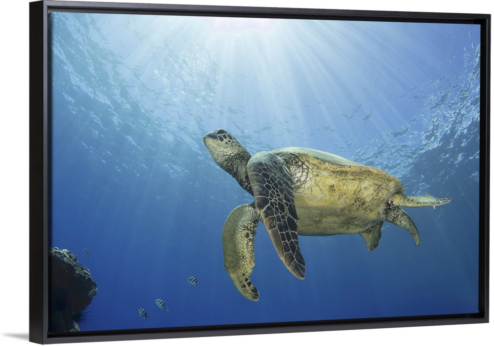 <p>Hawaiian Green Sea Turtle, Honu, Maui, Hawaii (Color Photograph)</p>