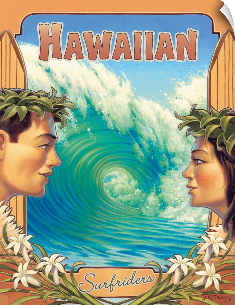Art Classic Art Decorative Art Kerne Erickson Painting Scenery by Region United States Hawaii Travel Posters Vintage Travel Posters Vintage Advertising Posters Travel Advertising Wave