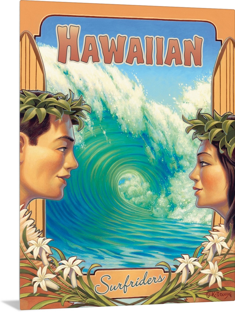 Art Classic Art Decorative Art Kerne Erickson Painting Scenery by Region United States Hawaii Travel Posters Vintage Travel Posters Vintage Advertising Posters Travel Advertising Wave