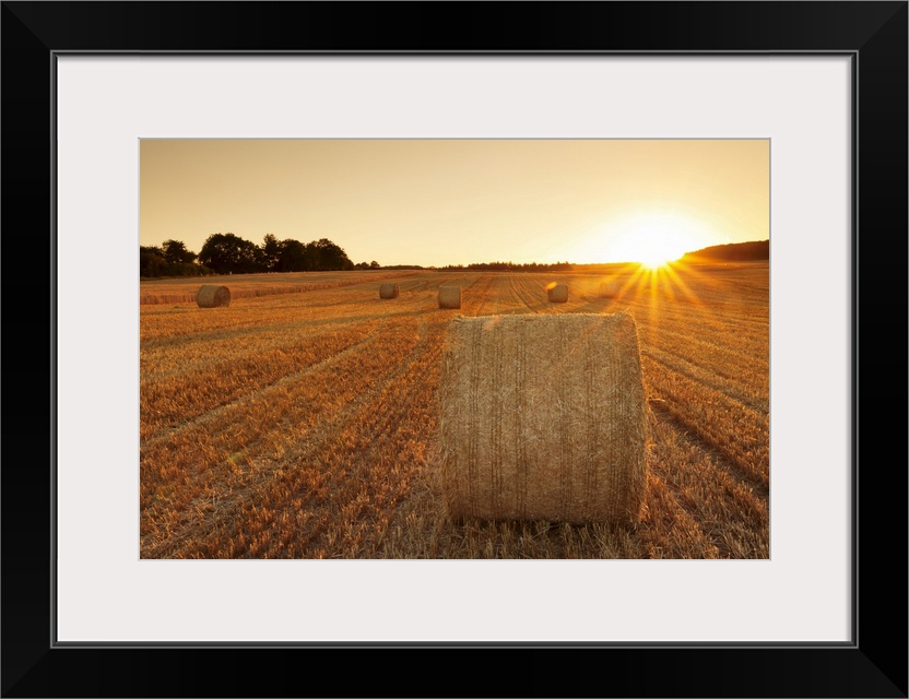 <p>Hay bales at sunset, Swabian Alps, Baden-Wurttemberg, Germany, Europe</p>