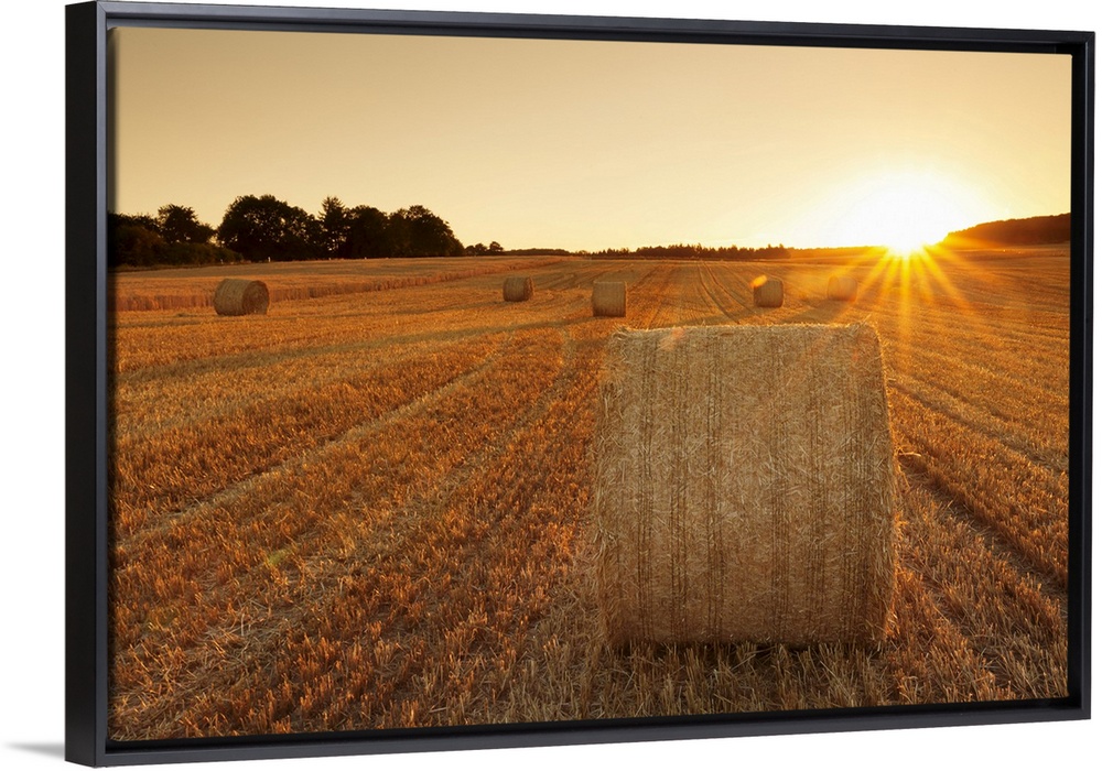 <p>Hay bales at sunset, Swabian Alps, Baden-Wurttemberg, Germany, Europe</p>