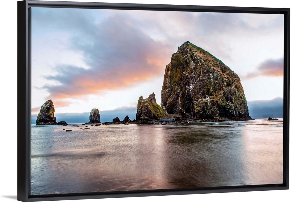 <p>View of a giant sea stack called, "Haystack Rock" at Cannon Beach in Portland, Oregon.</p>