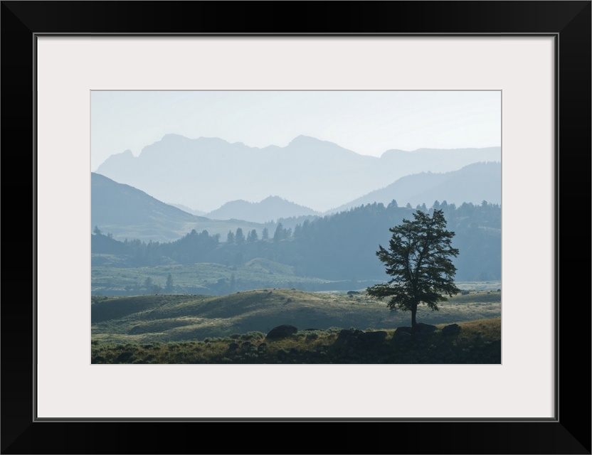 <p>Haze over the silhouetted Absaroka Range and Lamar Valley, Yellowstone National Park, United States of America</p>