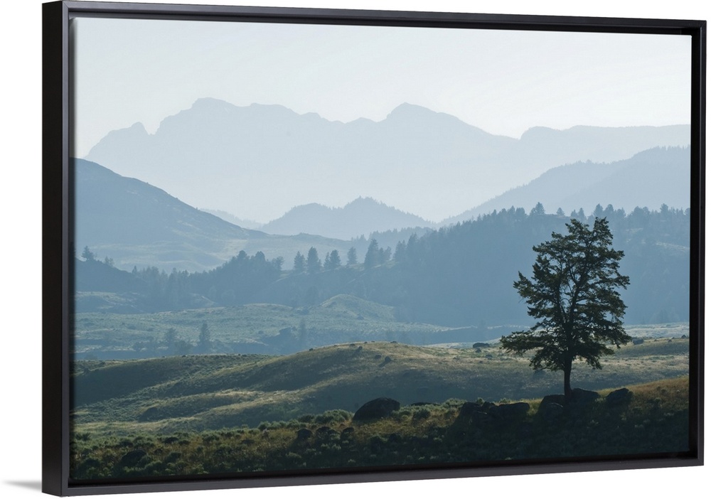<p>Haze over the silhouetted Absaroka Range and Lamar Valley, Yellowstone National Park, United States of America</p>